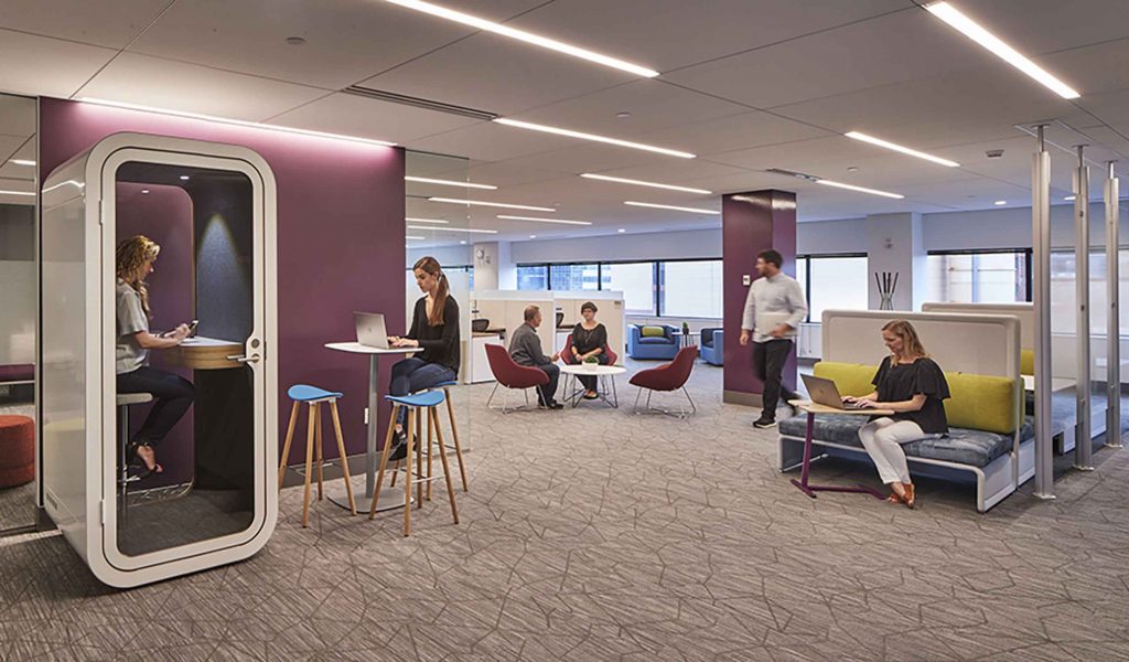 Pour les équipes créatives travaillant sur des projets qui demandent beaucoup de communication ou le partage d’idées et de suggestions, ce type de lieu de travail est crucial. Ce n’est pas toujours la façon idéale de travailler, bien sûr. Les zones calmes et cabines privées peuvent aider à compenser certains des inconvénients des bureaux à aire ouverte en donnant aux collaborateurs le choix de travailler de manière plus productive dans une autre zone du bâtiment.