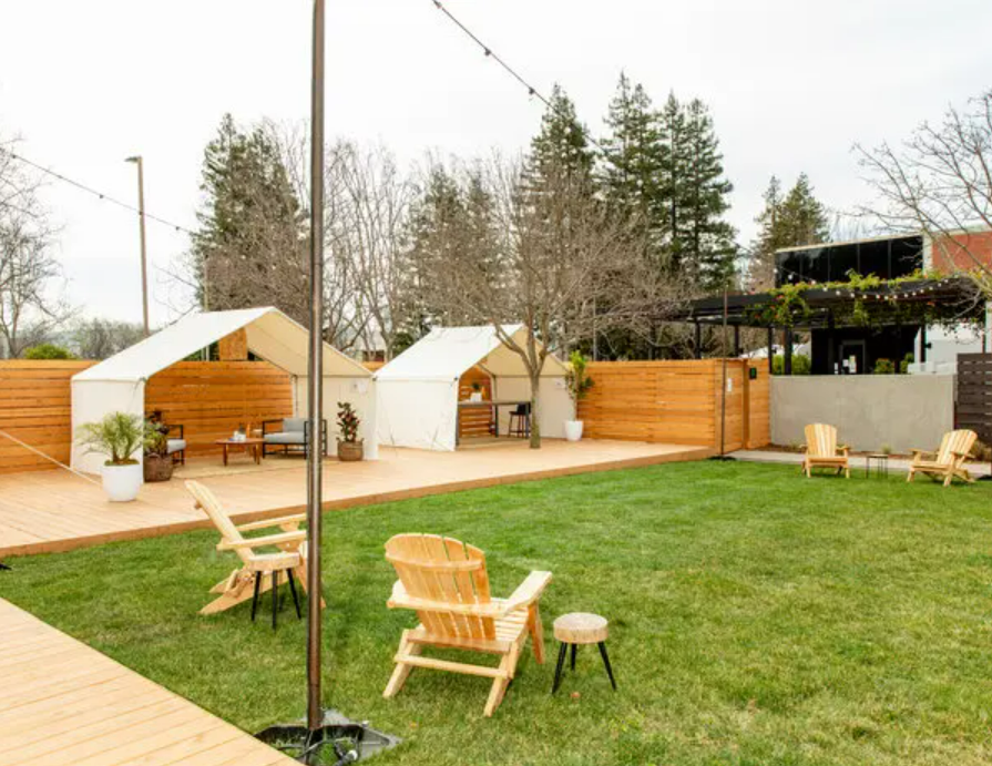 Avec les commodités d’un bureau intérieur, comme le plancher, l’électricité et le WiFi, ainsi que l’herbe et la brise, les tentes extérieures offrent une atmosphère de travail alternative.