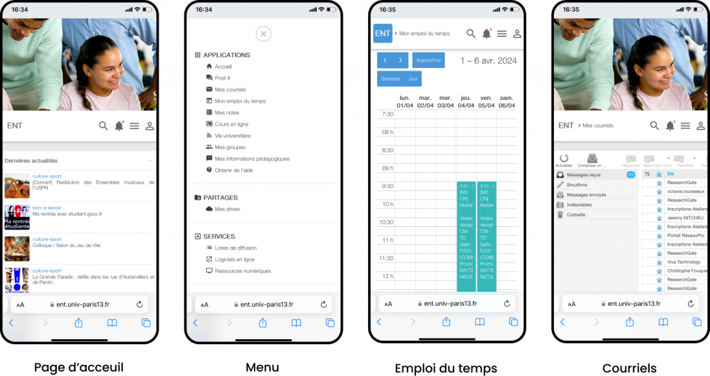 Interface pas responsive : L’emploi du temps et la boîte mail ne sont pas responsive sur mobile, ce qui rend la lecture et la navigation difficiles sur les petits écrans.